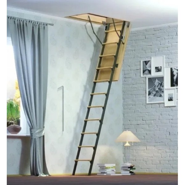Проём в потолке для монтажа этой лестницы должен иметь размер 60*120 см, а высота помещения не превышать 280 см. По длине лестницу возможно укоротить.