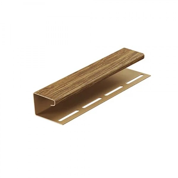 J-профиль для винилового сайдинга под дерево Docke LUX, цвет "миндаль", с дополнительным защитным полуматовым лаком, серия 2020 года.