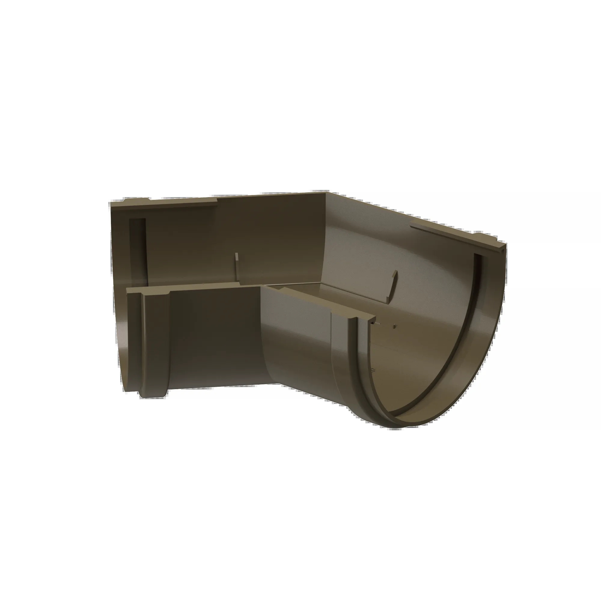 Угловой элемент 135˚ устанавливается как на внешних, так и на внутренних углах кровли и предназначен для соединения желобов под углом 135˚ в целях изменения направления движения воды.