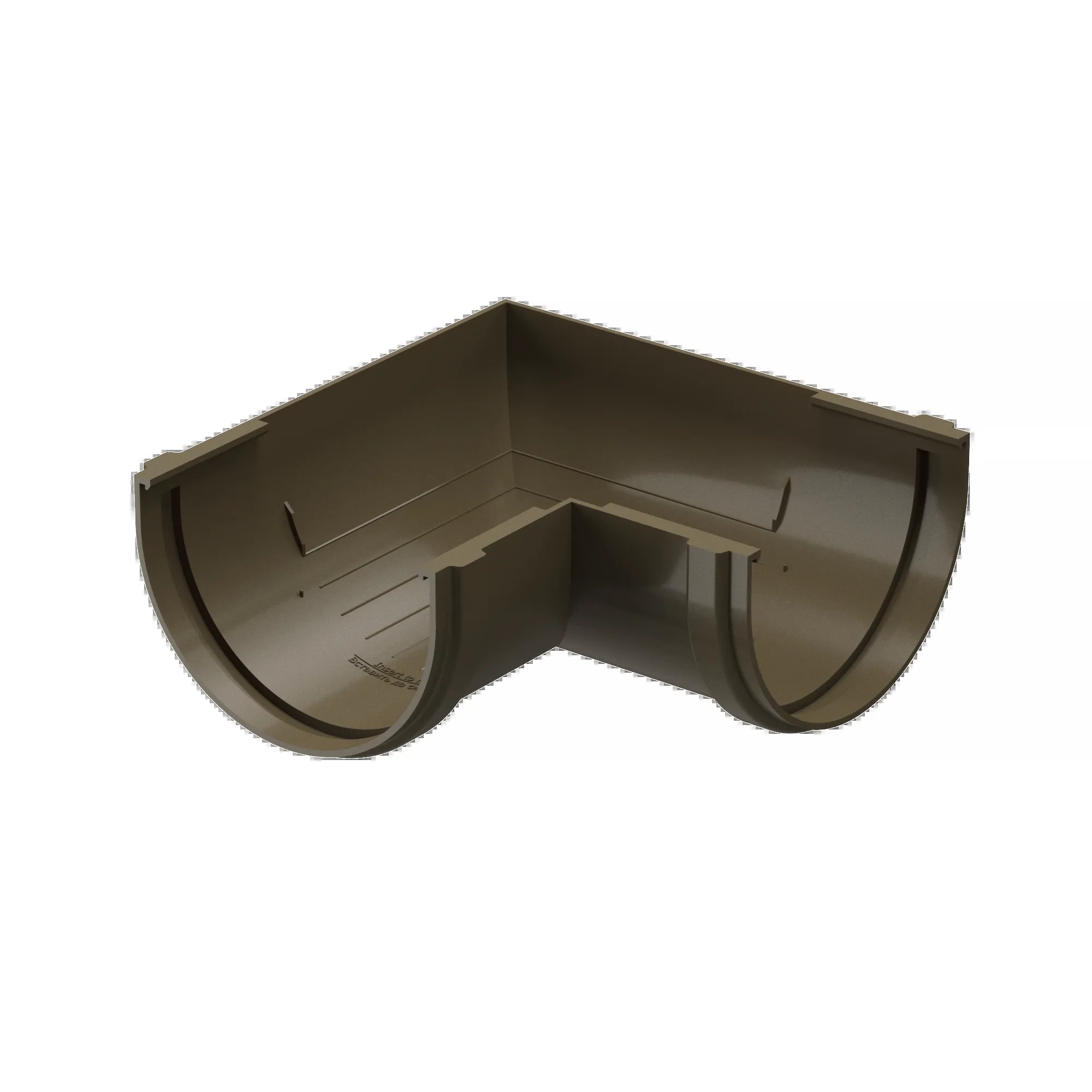 Угловой элемент 90˚ устанавливается как на внешних, так и на внутренних углах кровли и предназначен для соединения желобов под углом 90˚ в целях изменения направления движения воды.