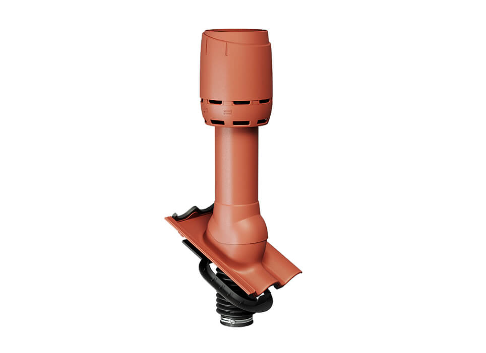 —Дефлектор канализационного стояка для волновой черепицы: проходная волновая черепица, изолир. вентил. выход (h 700 мм, d 110 мм), кольцо гидрозат