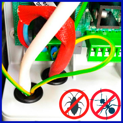 Вводы кабелей в блок управления у откатных электроприводов DEA надёжно защищены резиновыми втулками. Насекомые не смогут попасть к плате управления и устроить там большой фейерверк.