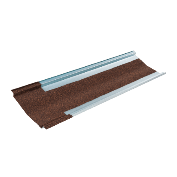 Ендова марки Люксард представляет собой доборный элемент в составе системы скатной кровли из композитной черепицы Люксард и служит для оформления участков с ендовами на кровле из композитной черепицы. Изделие выполнено из оцинкованного стального листа толщиной 0,45 мм и защищено слоем алюмоцинка. С внешней стороны ендова покрыта базальтовой гранулятом, поверх каменных гранул нанесен защитный акриловый лак, устойчивый к УФ-излучению.