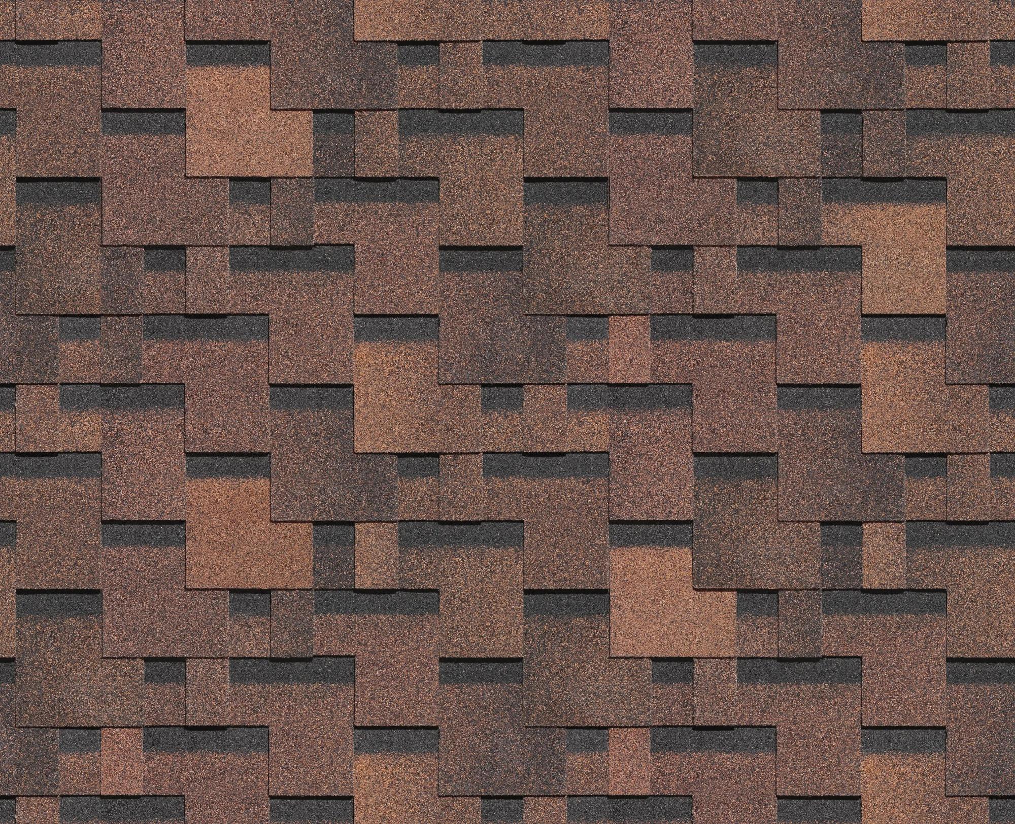 Гибкая черепица Docke PIE PREMIUM коллекция ГЕНУЯ цвет Кофе имеет прекрасный цвет с лёгкими переливами, придающими этой коллекции лёгкость и изящество, а прямоугольная и несимметричная форма черепицы создаёт оригинальный рисунок. Цветовое затемнение в верхней части гонтов, создает эффект объемной кровли.