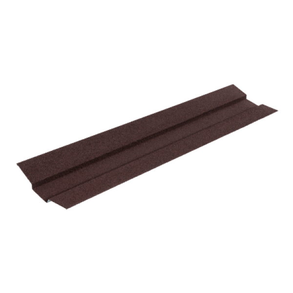 Накладка ендовы марки Люксард изготовлена из оцинкованной стали и защищена слоем алюмоцинкового покрытия, с внешней стороны нанесены каменные базальтовые гранулы. Изделие представляет собой доборный элемент и применяется для создания эстетического вида кровли из композитной черепицы, укладывается в ендовах.