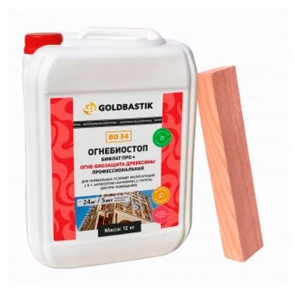Комбинированное био-, огнезащитное средство с максимальным огнезащитным действием для профессиональной защиты деревянных конструкций от воспламенения, горения и распространения пламени, а также гниения, плесени, синевы и насекомых-древоточцев в нормальных условиях эксплуатации (гигроскопическое и конденсационное увлажнение, без контакта с атмосферными осадками). Применяется внутри помещений, устойчиво к старению.