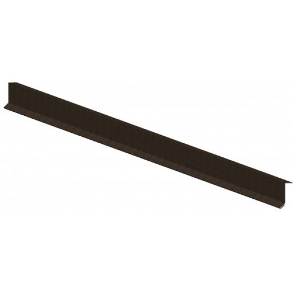 Прижимная планка изготовлена из листовой стали с алюмоцинковым покрытием и представляет собой доборный элемент, который используется при устройстве кровли из композитной черепицы. При помощи планки выполняют оформление примыканий к вертикальным поверхностям.