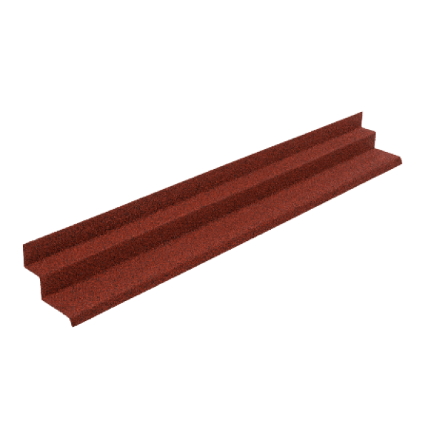 Изделие является доборным элементом при устройстве скатной кровли с покрытием из композитной черепицы Люксард, изготовлено из листовой стали с алюмоцинковым покрытием. Внешняя сторона имеет посыпку из базальтового гранулята. При помощи элемента выполняют оформление примыкания к стене, расположенной поперечно кровельному скату. Длина примыкания марки Люксард составляет 1250 мм. Расход 0,9 штук на погонный метр.