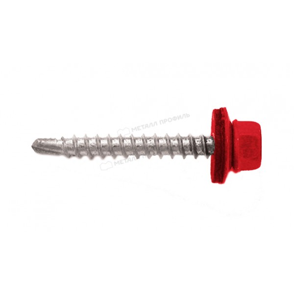 Чтобы элементы кровли прослужила как можно дольше, очень важно выбрать качественный крепёж. Именно от надёжности саморезов зависит герметичность соединений и долговечность и основательность всей конструкции. Саморез 4,8х35 RAL3020 (красная насыщенный) имеет высокую способность просверливания, выполнен из оцинкованной стали и удачно подходит для монтажа.