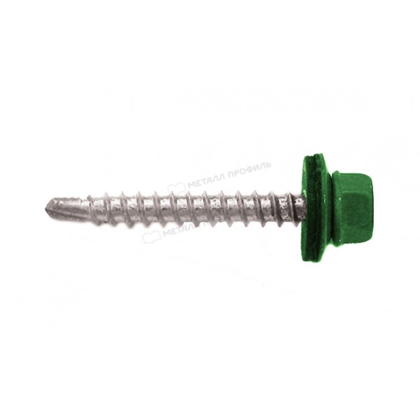 Чтобы элементы кровли прослужила как можно дольше, необходимо выбрать первосортный крепёж. Именно от надёжности саморезов зависит плотность соединений и долговечность и прочность всей конструкции. Саморез 4,8х35 RAL6002 (зеленый лист) сделан из оцинкованной стали, имеет отличную способность просверливания и прекрасно подходит для монтажа.