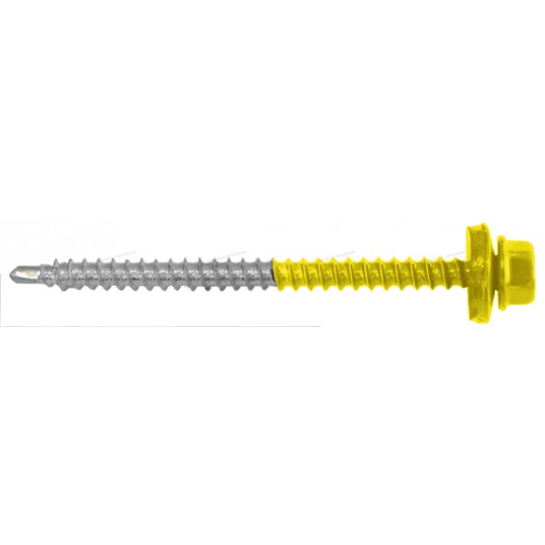 Чтобы соединить составляющие, советуем использовать соответствующие саморезы. Особая форма сверла позволяет соединять части без предварительного засверливания и разрушения декоративно-защитного слоя, а своеобразная форма головки обеспечивает плотное прилегание самонарезающего винта к материалу. Саморез 4,8х70 RAL1018 (желтый) не ржавеет, поскольку изготовлен из высокопрочной стали. С помощью него вы прочно соедините составляющие, а полимерный слой не будет излишне повреждён.