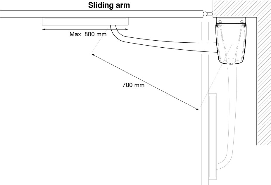 Рычаг скользящий для электропривода GEKO, применяется при ограниченном пространстве по краям ворот, когда обычному шарнирному рычагу не хватает места для складывания.