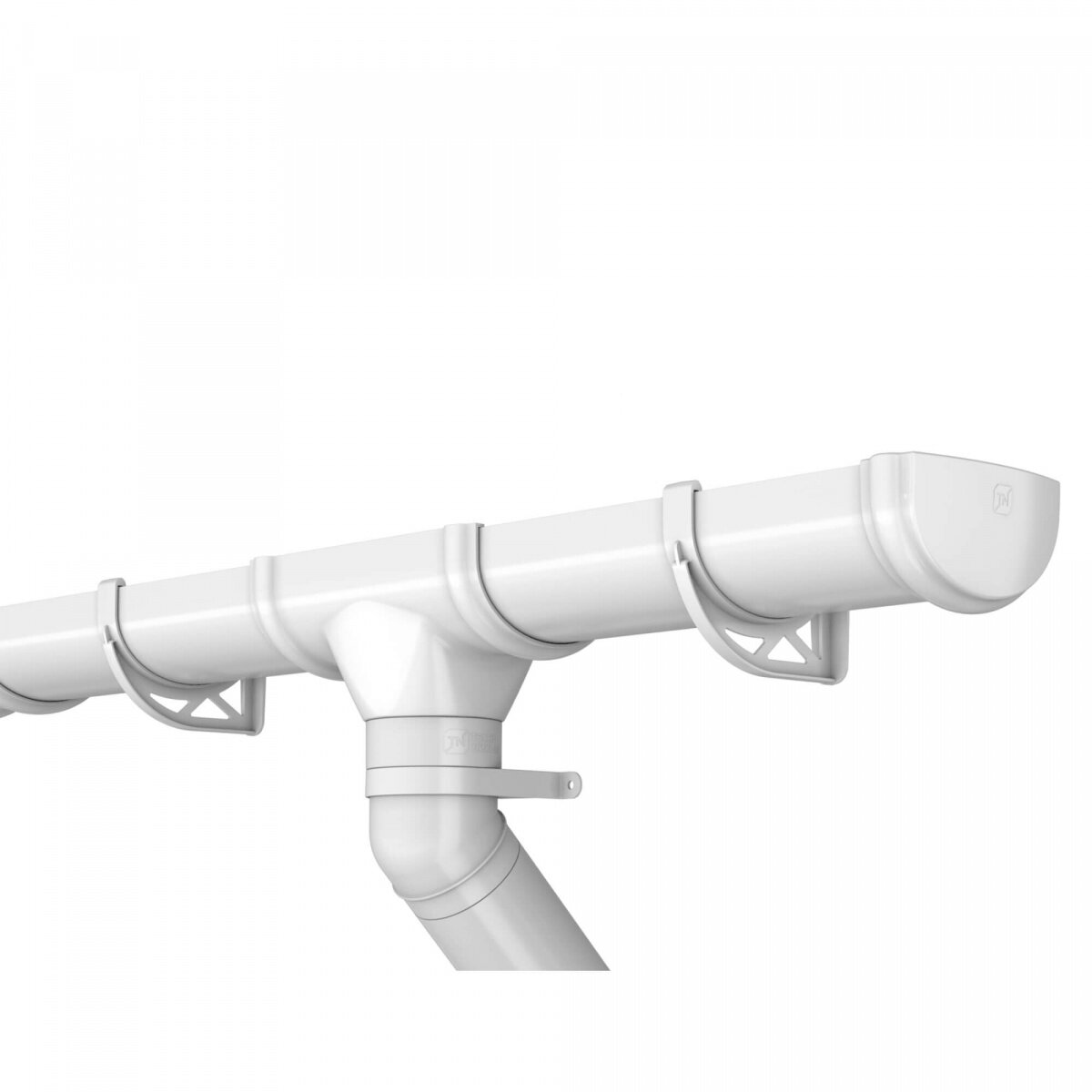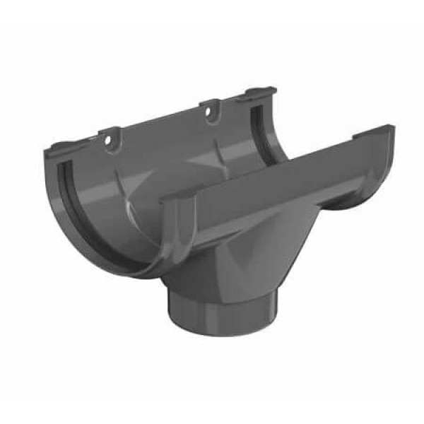 Воронка осуществляет отведение дождевой и талой воды из желоба в водосточные трубы. Соединение с желобом происходит с помощью защелок с резиновыми уплотнителями.