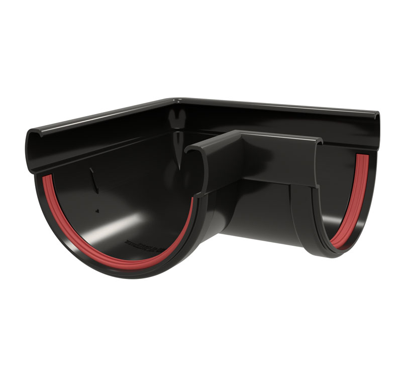 Угол желоба соединяет два желоба под углом 90°, как на внешних, так и на внутренних углах фасада.